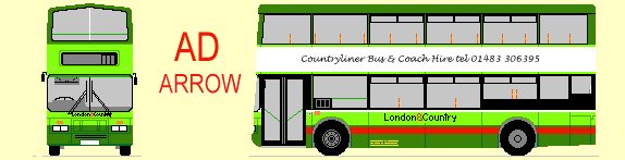 AD9-10 were fitted with dual purpose high-backed seating, losing a row of seats upstairs in the process. They had a broad white band between decks advertising the coaching arm of the company: Countryliner. These two went to Merstham also. AD10 looks good at Showbus 1998.But London & Country was taken over by the Cowie Group, who rebranded the company as part of the Arriva empire. The Surrey and West Sussex operations did not provide the kinds of return on investment that Cowie demanded, and drastic economies were made in Arriva's characteristic style. The ten decent Arrows were shipped off to Heckmondwike in Yorkshire, and I often saw them in Leeds (unfortunately never getting a photo). They were replaced at London Country by ex-London Metrobuses, that a driver described to me as "clapped out bags of ****". After Arriva Yorkshire had had a chance to knock the stuffing out of them they were sold on to a variety of operators.
