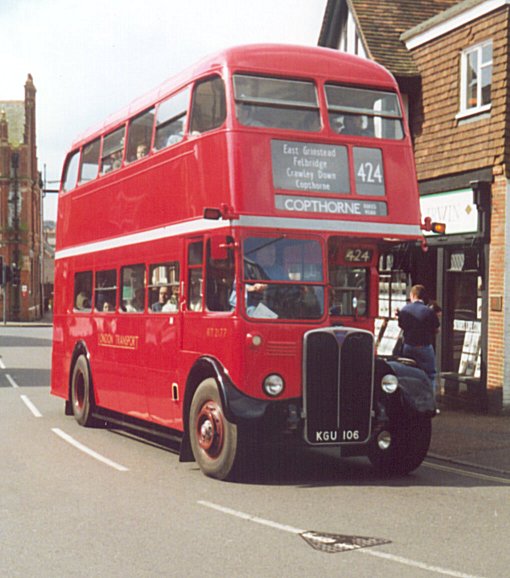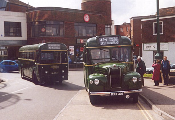 East Grinstead Running DaySunday April 22nd 2001Prepared by Ian Smith, 30th April 2001Part 2: Honours and DutiesA key part of this year's Running Day was the start of the RF50 celebrations. Yes, it is fifty years since the RFs started running. The first were the tour coaches for the Private Hire Department, which had to be nomore than the then legal maximum 27ft 6in long, but which were fitted with glass quarter panels and luxuriously appointed inside. (Well, they had deep cushions on the bus seats, and a different paint scheme!)