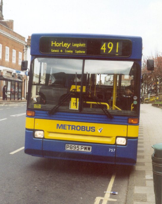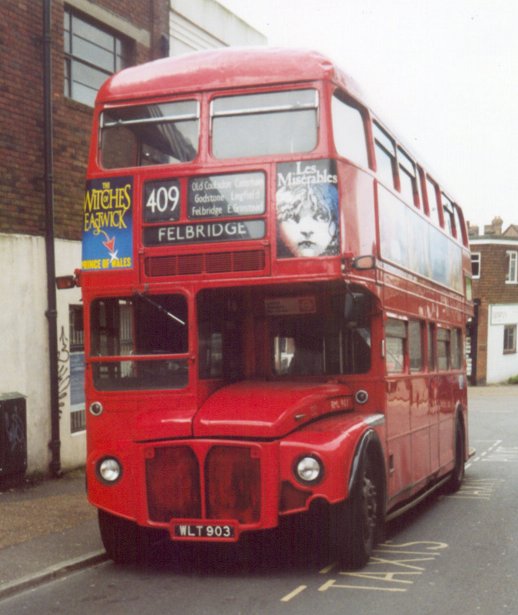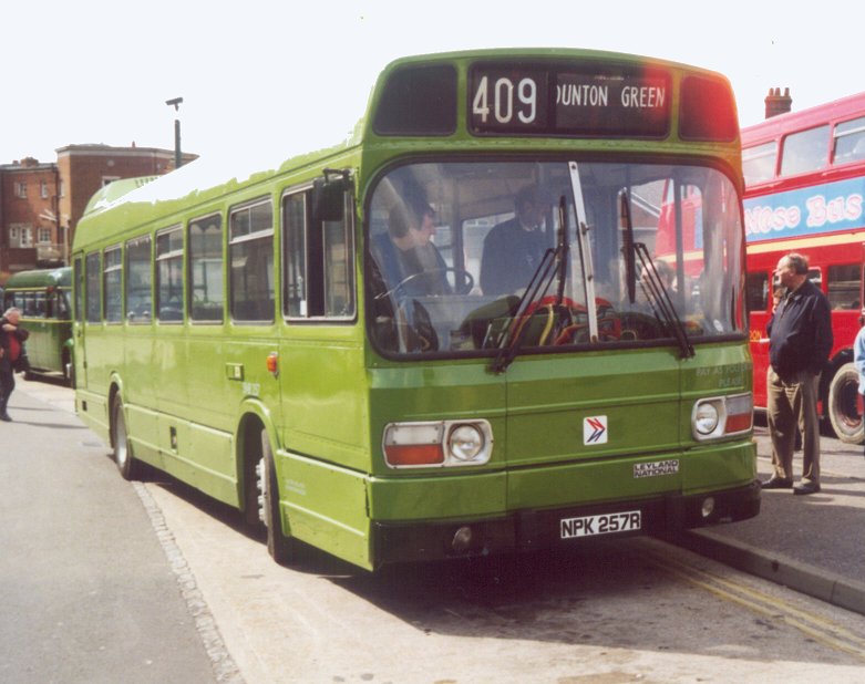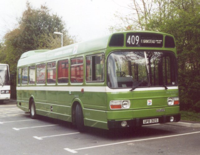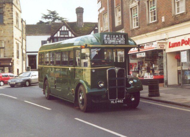 East Grinstead was a border town between London Transport, Maidstone and District and Southdown, and the last of these was represented during the day by "Queen Mary" PD3 No.277, which operated short turns on the 92. Also in the bus park was another type now history in Sussex (since Arriva's departure from Crawley): Metrobus M59. Other more middle-aged types were represented by Metroline London Northern's RML903, set up for a turn on the 409 to Forest Row, like the early red members of the main production batch of RMLs, and Leyland National SNB312 in NBC green with white band. The latter had stood in for RLH48 after the low-height veteran had been impounded on its farm by foot and mouth problems, and had travelled in from Hemel Hempstead as a 708. The Country Green RFs were still circulating, with RF672 in the park between 494 turns and RF626 passing through on a 434. GS2 was heading for Edenbridge with a 485 working, and red RF489 was taking a turn on the local 428 circular service.