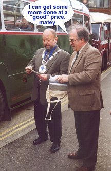 I have only received two sets of suggestions as to what he was saying (you miserable lot), so here they are (together with my own suggestions):