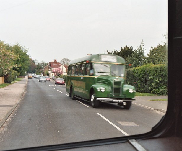 Yet more passengers joined at Oxted Station. Some were enthusiasts off a train from London, others a group of local lads saving their feet. We rumbled off, down past the shops and down to cross the A25 to reach Old Oxted. We climbed the narrow street without problems, but attracting some interest from people out and about. Then it was back onto the main road for the climb to Tandridge roundabout, where we turned south for the run to East Grinstead.