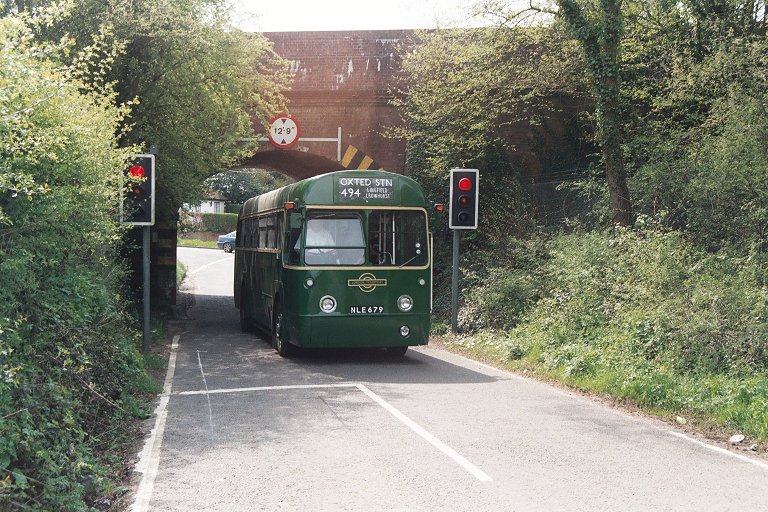 Now we were a 494 to East Grinstead. We headed off into the undergrowth, and soon rejoined the road to Limpsfield Common, where the A25 was busy. We rumbled down past the road to Limpsfield village, which we avoided because of the speed bumps, and turned off down into Oxted. We waited for a few minutes at the stop (we were early), before pulling round under the notorious Oxted Station bridge to reach Oxted Station (West Side).
