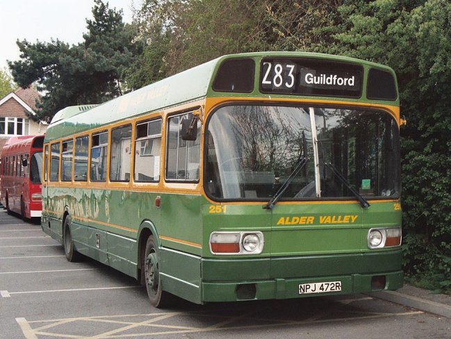 Down the other end of the carpark were some of the more modern visitors, including T1125. Now still with East Kent, it wore immaculate Stagecoach national livery, which suits these buses admirably (in my opinion). The dot-matrix display was set up to proclaim its historical importance as the last Titan built. Nearby was Alder Valley 251, restored to the green, green and honey-coloured livery.