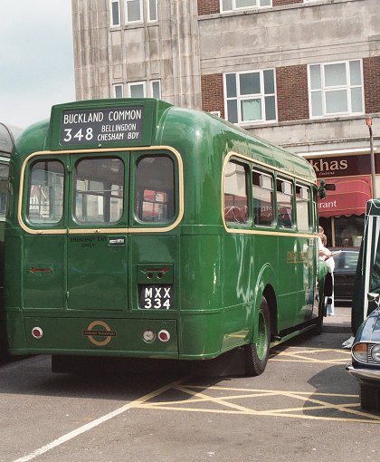 I crossed King Street and walked up towards the operational bus park. RF213, still in process of having a roof repaint, scooted down the bank and round onto the stand. The bus-park held several other RFs on lunch-break: red RF406 had already been to Crawley and back.