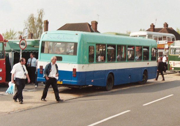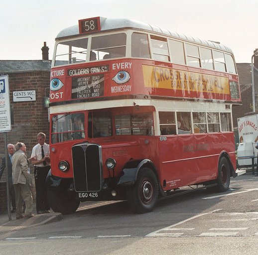Meanwhile, the visiting buses departed too. The Routemasters went. RF19 eased a way out of the car-park, and was soon followed by the Cobham contingent on STL2377, which was now dressed as a 58 to Golders Green Station. GS34 went too.