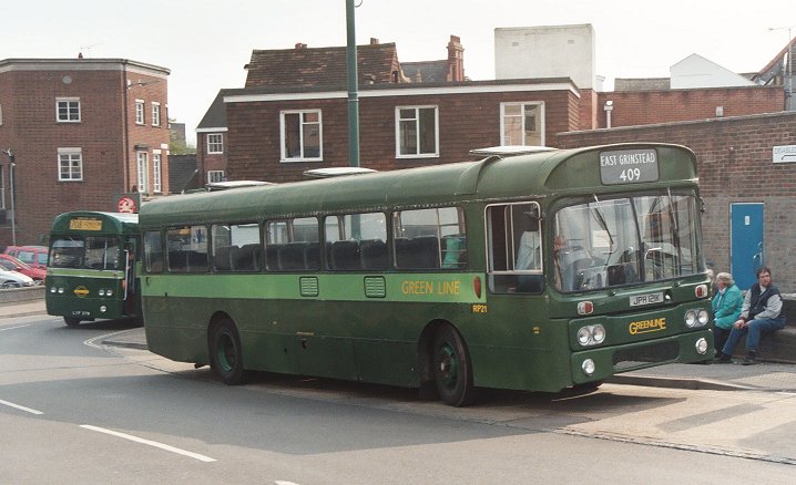 More traditional East Grinstead operation was provided by RF28 and red RF366. RF28 was heading for Kingscote Station, to copw with any remaining Bluebell passengers, while RF366 was loading up for Crawley, as the first leg of its long journey home.