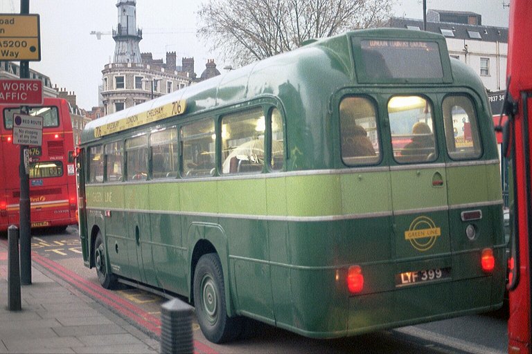 We were off. We headed east along the main street to the roundabout, turned, and came back past the War Memorial. We headed down to the station, where we passed RT604, and headed north out of East Grinstead. We missed out the Lingfield diversion, and headed on towards Godstone. We followed the A22 up over the North Downs, through the narrow pass and down into the narrow chalk valley through Whyteleafe. Soon we reached Greater London, in the shape of Purley, and progress slowed a bit as we continued north along the A23, by-passing Croydon to Thornton Heath and Streatham. We passed busy Brixton garage and dived down into Brixton itself, before wending our way through to Vauxhall. I considered jumping ship there, for the Victoria line, but we were making reasonable progress again as we headed for Victoria.