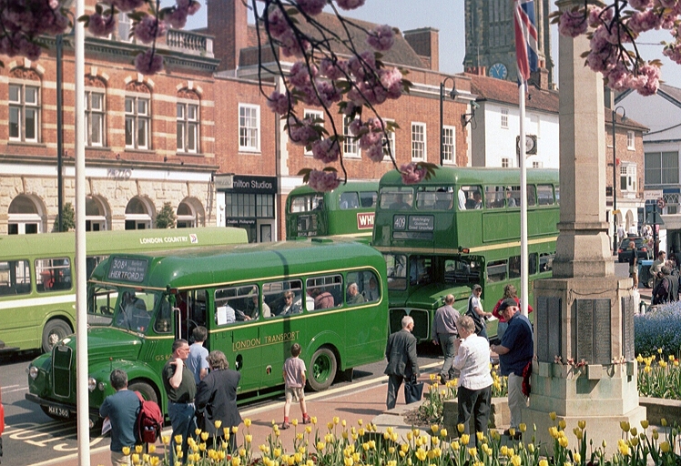 After we alighted the scene changed quite rapidly. GS60 - newly purchased by Roger Wright - emerged to work a 494 to Oxted (I think - it was wearing Hertford blinds). Metrobus' RML2317 paused on a northbound 409, while RT1700 (now Blue Triangle) was heading for Forest Row. I didn't look to see where SNB340 was headed, but it may have been Edenbridge.