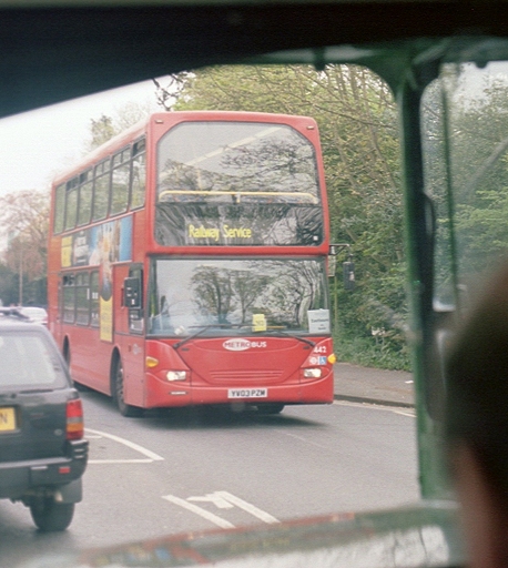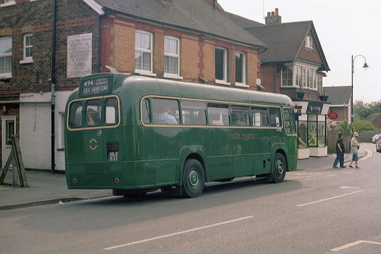 Instead I crossed the road again to the southbound stop, where I was soon able to hail green RML2317 heading for East Grinstead. I settled into a seat behind the bonnet. We had not gone far before RT604 dashed the other way, taking me unawares. Another Metrobus Omnidekka (442) also headed north. We came into East Grinstead behind RF48, which had just dashed up to South Godstone and back.
