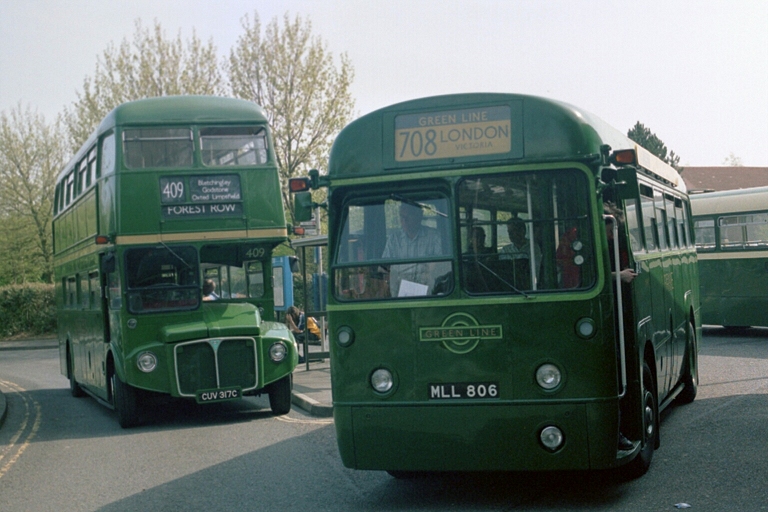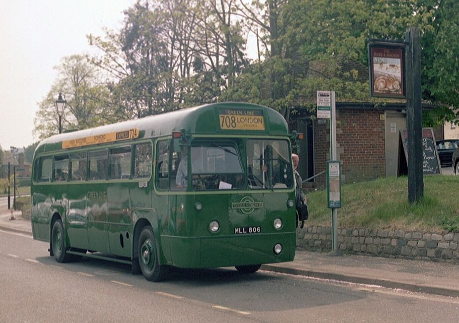 From Lingfield we turned north-west to Blindley Heath, and joined the main road there to motor north to Godstone Green. The RF exuded its classic feel of comfortable solidity as we made good speed along the good road. I alighted at the Hare & Hounds at Godstone Green, enjoying the sunshine on the magnificent trees next to the stop.