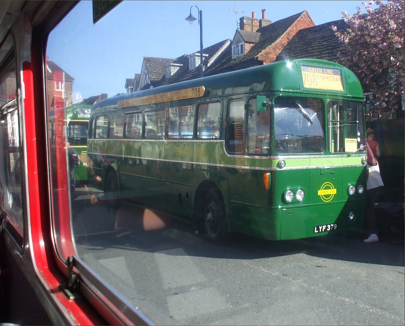 As we pulled away we passed RF679, RT3062 and RF429 standing on the High Street. We continued past the "Road Closed" sign and on along the attractive street. We were soon out of the town and down the A22 towards Ashurst Wood. As usual we avoided the village, using the by-pass to descend to the County Boundary (East Sussex this time), and on down to cross the river into Forest Row.