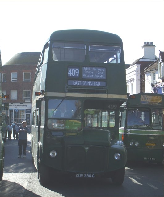 Visiting RF168 squeezed round the corner onto the High Street, past RML2731, and was soon followed by RML2330, arriving on the last 409 from Dormansland prior to heading north for West Croydon.