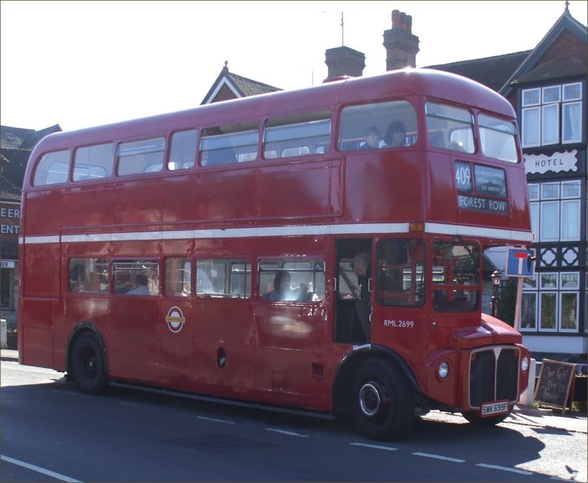 We set off back to East Grinstead, climbing up the long hill past Ashurst Wood. Here came RT604, running down the hill on the next scheduled 409 to Forest Row.