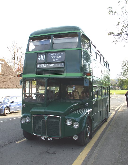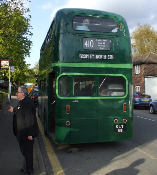 We headed north up the main road. I must have been sleepy, as I remember very little of the trip to Godstone Green. But soon we pulled in towards the village green, and pulled up outside the pub to change the blinds. Now we were to be a 410 to Bromley North Station.