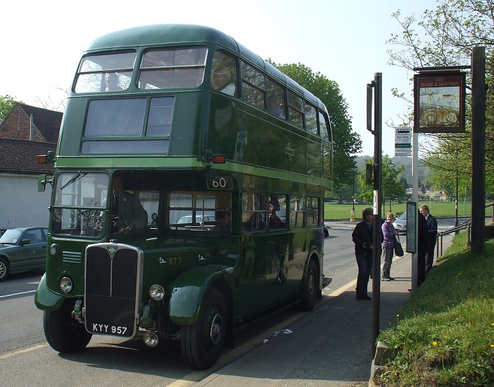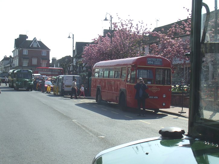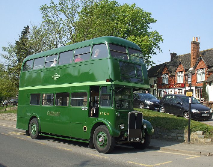 Then the immaculate GreenLine-liveried RT pulled back out to the station stop, to load up for the trip to East Grinstead. We followed the modern bus route through Bromley, threading between the shopping malls, to reach Bromley South, where we made a further pick-up. Although the bus was not wearing blinds, we were following the old 410 route to Godstone. I sat in my customary seat behind the bonnet, and remembered Green Rover days, when an RT on the 402 or an RLH on the 410 were the only ways out of Bromley, wherever you were going. Later there was a short period of RTs on the 410, followed by the Godstone RMLs. These offered less character, but a much better view for passengers!