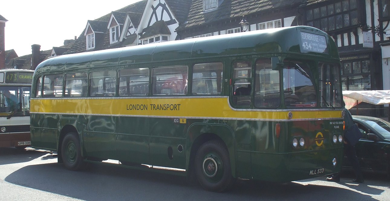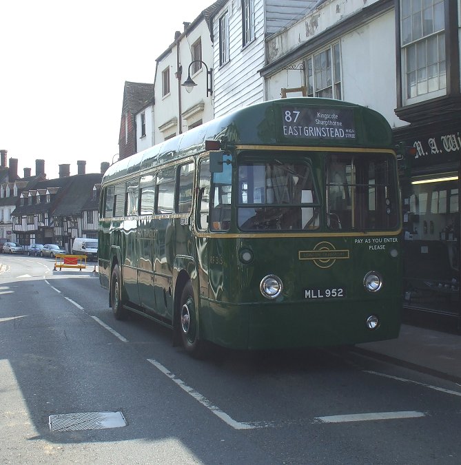 In the sunshine, also heading for Forest Row - but the short 409 way - was RML2323 in the light green and yellow favoured by London Country for a time.