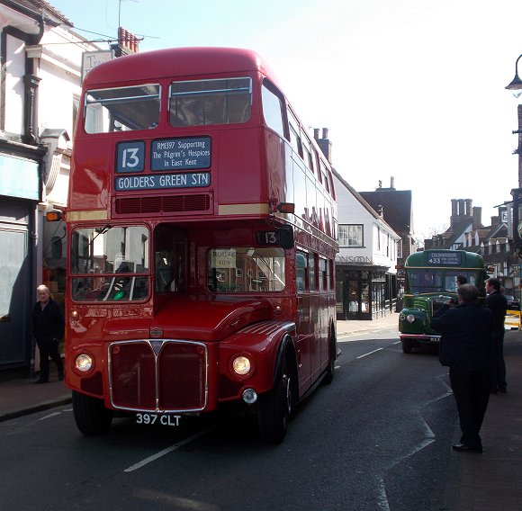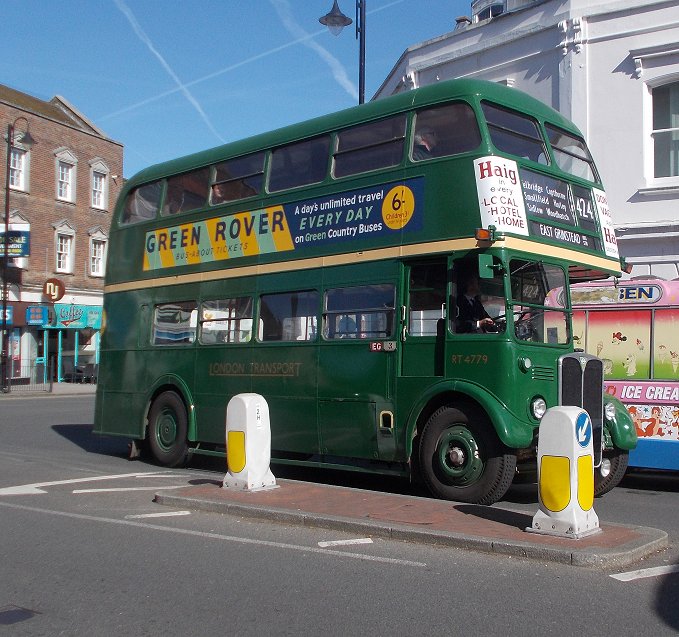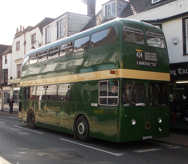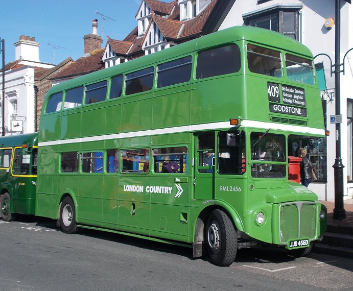 East Grinstead Running DaySunday April 12th 2015Prepared by Ian Smith, 20th April 2015.East GrinsteadEast Grinstead was buzzing. The local council had allowed Country Bus Rallies to close off the main street past the War Memorial for the day, allowing exclusive use for buses - both the normal Metrobus services, plus the CBR services.My instant impressions were that the preserved buses are getting younger, and that London Country livery appears more than it used to. Typical were the first two buses I looked at: Daimler Fleetline XF1 and RML2456 are neither of them youngsters, but both were in London Country livery, XF1 (from the London Bus Company) in green and yellow, and the long Routemaster in NBC green and white. The XF, celebrating its fiftieth anniversary, was dressed for its old stamping ground on the 424, while the Routemaster, a long way from its old haunts in Harlow and Staines was set up for a short trip on the 409 to Godstone (after which it would head for Westerham on the 410). Behind the RML stood RF308, even older, but dressed in London Country green and yellow. Mind, it was set up for a London Country era route: the 485 through to Westerham. Different colours were provided by RT1798, inching westwards through the bus jam, and preserved Metrobus Lynx Mk11 No101, in its blue and yellow for a trip to Crawley on the 438. Not that the older buses in London Transport Country Area green and cream were absent. RF633 had arrived already on its 485 from Westerham, and was prepared for a foray on the local 428, while GS62 waited for a turn on the 494. Green RT4779 arrived from its long 424 run from Reigate. Red RT1702, not taking part in the days activities, still performed a useful function by blocking off a side-road. More liveries were to be seen. Maidstone and District Leopard 2814 arrived on the route 91 feeder service from Tunbridge Wells. It was followed along the street by preserved Metrobus Olympian 834, an East Lancs bodied Volvo that had spent nearly five years on route 64 before moving to Crawley for another eight years Metrobus service. Now it was heading north on the 409 to Godstone Green. Next came the other fifty-year old Daimler Fleetline, XF3 in London Transport green and cream, also working the 424. Nearer the War Memorial stood RF429. Although not one of the red RFs loaned to London Country by LT, many were, so the red RF is not out of place here as it waits for a turn on the 494. Coming eastwards along the street were preserved buses of two very different eras: Dennis Trident 17523, ex Stagecoach London, shows how fast the London bus scene, and preservation, is changing as tighter emission controls expel the earlier low-floor buses from London streets. Today 17523 was operating on the 438 between Crawley and Forest Row. A stranger in our midst was ex-Brighton & Hove open-top Bristol CAP229, which was operating local tours, very popular in the warm spring sunshine. Its Gardner engine sounded wonderful. Back at The Crown, regular attender RT604 had arrived on a long 409 trip from West Croydon. Much rarer was TD95, puttering in from the east on a 428 from Dormansland. Behind the Tiger another two buses from the mid 1950s put in an appearance: GS42 and RM1397. But now it was time to make a move. I headed towards RT4779, which was heading east for The Stone Quarry...
