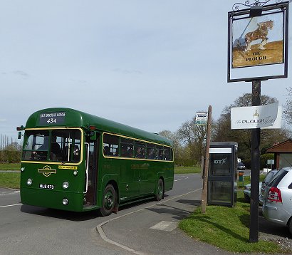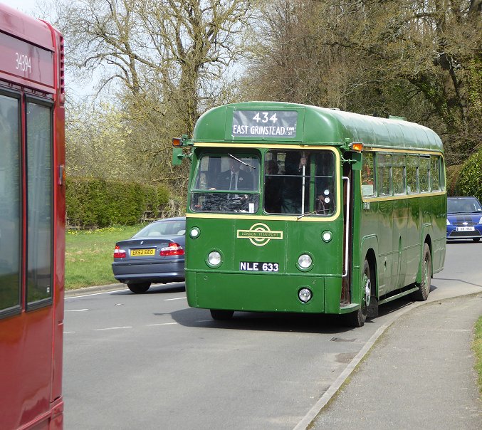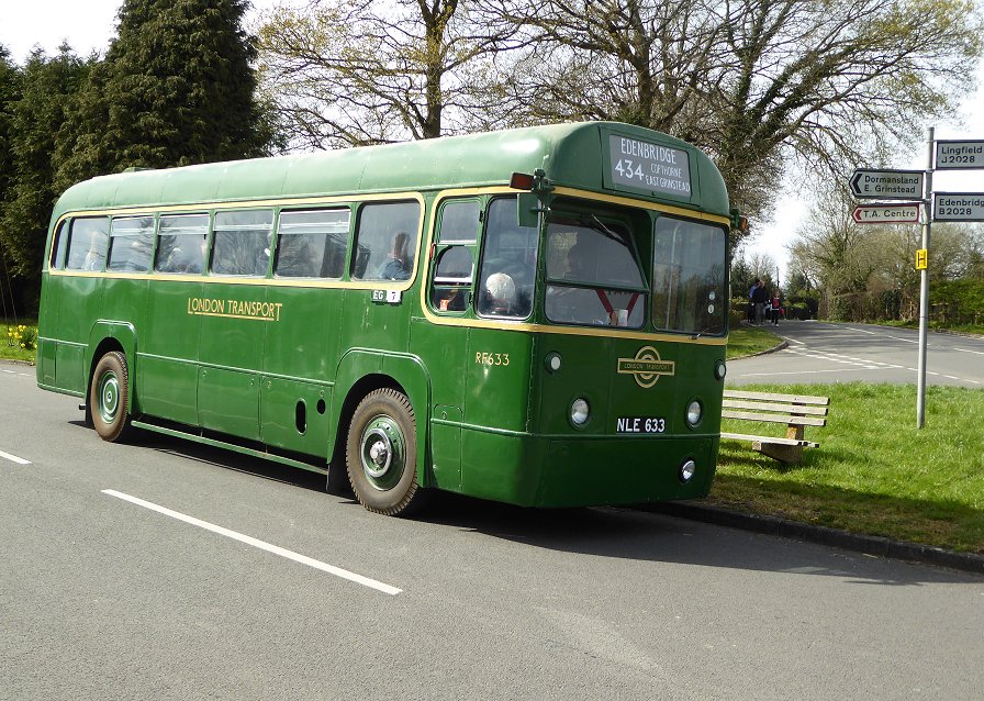 434: Edenbridge to Dormansland (RF673)It was a long cool wait on Edenbridge High Street. I must add that this doesn't happen very often - missed connections have rarely featured in my travels with CBR. At least it was sunny. RF673 arrived on time (12.18) with the 434. It was almost full (as were most buses today). So perforce I had to squeeze onto a seat near the back. That meant that I was not going to go jumping off for photos at stops along the way. We continued up the road north, passing under both railways as we climbed up to Hilders Lane. There we turned west, and rumbled along to the complex of railway bridges where the Tonbridge - Edenbridge - Redhill line burrows under the Uckfield - Edenbridge Town - Oxted line right next to the road-bridge over the latter. There we turned sharp left, crossing over the Redhill line, and meandered down through Troy Town. Bluebells were showing blue in the woods alongside the road. RF673 on the 434 to Hilders Lane. Inside RF673, near Troy Town.We came back into Edenbridge, and took a back-road through to reach the High Street. We descended through the narrow section where the Crown Inn has its metal banner across the road, and continued down to the Star (terminus for the 465 and 485). Then it was on southwards, to meet the road to Marsh Green. We turned westwards, and climbed towards East Grinstead. I was busy with the timetable again, and aimed to change buses at Dormansland.RF673 at Dormansland Plough.I alighted at the Plough (12.50), and RF673 purred away towards East Grinstead.RF633 appeared next on the 434 to Edenbridge (1258). I said hello, then watched it disappear eastwards. RF633 pauses at Dormansland Plough, then heads for Edenbridge.Another long wait. The bus for the 428 was the same one that was not there for the 434, although I didn't know it. I used the pub, for a PNB and a drink. Back to the bus stop. The wait continued. I was expecting RF633 to return soon when ex-Stagecoach Dart 34394 hurtled up from Lingfield on a 409 working to Dormansland (1246). As Darts do, it spun round the traffic island and stopped at the Plough stop.RF633 pauses at Dormansland Plough, then heads for Edenbridge.409: Dormansland to East Grinstead (34394)The Dart had a few minutes layover at The Plough. Time for the blinds to be changed and the driver to use the pub facilities ( I presume). RF633 arrived back from East Grinstead (1353), emphasising that I had been here an hour. I joined 34394.34394 with blinds reset. RF633 arrives back at Dormansland Plough.Then we were away: round the tiny triangle and back along the road to Lingfield. We turned left, not for Baldwins Hill but second left, onto the road to Newchapel, the main 409 route. From there we headed into East Grinstead on the A22, down to Felbridge where we joined the A264 from Crawley, and on into town , to reach the High Street (1417).Stagey: 34394 mascot. 34394 at East Grinstead, heading for Forest Row.I went to find something to eat, having spent nearly two hours out of the last three and a half waiting at bus stops.....