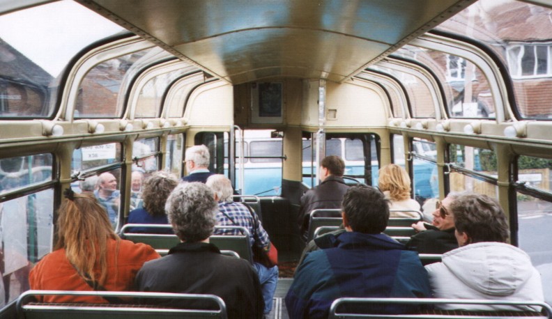 XF1 to East GrinsteadAt Lingfield Station we met Alan Charman with XF1 on a 409 short working to East Grinstead, and I transferred to the Fleetline for the main-road ride back to East Grinstead station.RT2043 to LingfieldThere I changed onto Roger and Dawn Stagg's RT2043, northbound on another 409 short to Lingfield Station. This was a lovely quiet ride, with not many passengers aboard the immaculate RT, and was an opportunity to chat.