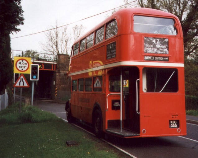 RF4 to Dormansland![]() A few minutes later came the opportunity to ride on Peter Penfold's Private Hire RF, RF4, on a 428 service out to Dormansland (Plough Inn), another of the booked connection points. ![]() Out there I found red RF530 waiting on the 434 connection to Edenbridge (but didn't have time for the trip, unfortunately), and RF308 on a 434 service the other way back to King Street. I climbed back aboard the latter, and enjoyed the short trip down into town. RLH 48 pulled out from the Stone Quarry Estate ahead of us, and stayed just ahead all the way down to the High Street. ![]() RLH48 to the Stone QuarryI looked round the display area again, then enjoyed a trip up to the Stone Quarry Estate again, this time aboard the immaculate RLH. It was packed, humid and steaming upstairs, so I enjoyed my favourite downstairs seat, at the rear nearside, chatting to the conductor, who was also enjoying the marvellous day. I alighted to watch the bus turn in the T in the estate, and boarded again for the trip into town via the station.![]() (left)RLH 48 is signalled back by the conductor at the reversing T in Stone Quarry Estate.
