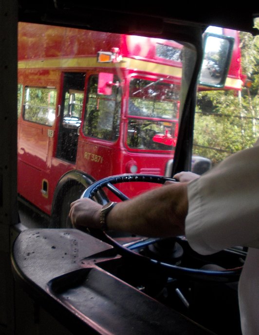 A Look Back at Ongar: 6th October 2013Prepared by Ian Smith, 13th October 2013.381 North Weald to Epping via Toot Hill: RF180On the forecourt of North Weald Station RF180, newly restored to public passenger carrying service in historic Green Line livery, was waiting on the forecourt with a 381 to Epping Station. I went over to join Roger Wright, who was driving.The 381 was historically a complex route, with several variants at the eastern end (at the same time). Some terminated at Coopersale Common. Others went to Toot Hill. Several routes were taken, to match the perceived traffic requirements. Briefly it ran to Ongar. Roger Wright's new 381 has a similarly complexity, as well as the extensions to North Weald Station. It runs variously via Toot Hill or Coopersale Common, to suit the requirements of the railway: when demand is likely to be light it takes the longer route via Toot Hill. When many passengers are presumed to need to be taken from Epping to North Weald to catch trains it operates more directly, via Coopersale Common. We set off. From the Station Approach we turned east through North Weald, along the road towards Ongar. A right turn at The Talbot saw us on the busy A414 road, but we fairly soon swung off into Blake Hall Road, dipping down into the valley then climbing up past Blake Hall Station (closed). Blake Hall Road is reasonably wide, but Toot Hill Road, joined at Ivy Cottage, is a different matter. For car drivers it no doubt provides a handy rat-run, if one assumes no traffic coming the other way round the blind corners. And if that traffic is a bus... We had several close calls on the bends, as drivers of big cars arrived at speed. Apparently the problem is worse with RP21: the extra nine inches of width makes a world of difference.