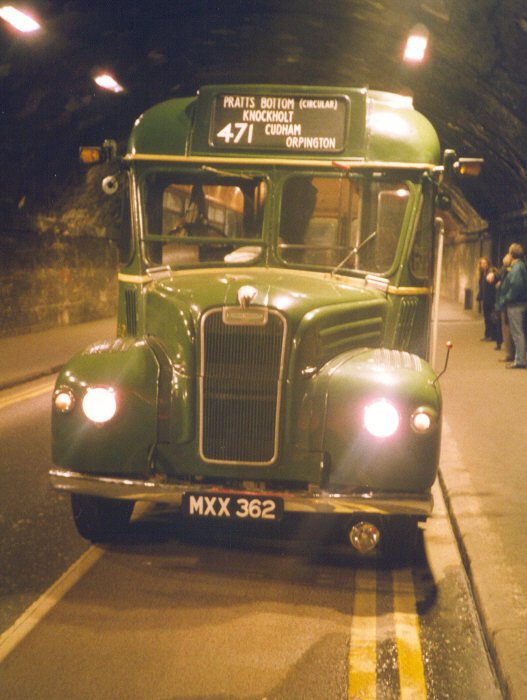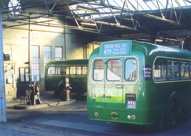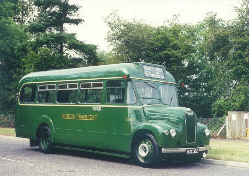 After LondonSt George's School, Harpenden: October 1973 - 1977![]() GS62 in January 1976. (Copyright: Mike Lloyd)Preservation storage: 1977 - 1990During this period GS62's engine was replaced, and GS62 was kept snug and secure.Active Preservation: 1990 - presentIn 1990 a new phase of GS62's preservation began. A full restoration of the engine compartment and front end was carried out, and the interior was stripped out and relined. GS62 was restored to London Transport condition, representative of a year after overhaul, inside and out.Reconditioning at Edgware LT garage, June 1990: exterior and interior refurbishment. (Alan Charman)![]() GS62 stands in the doorway of Dunton Green garage on the garage's last day of operation, 14th February 1998. (Alan Charman)
