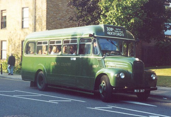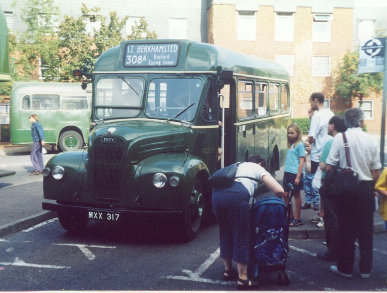 GS16 MXX 316 10/53 new to LT, Guy Special #44737, ECW B26F body #6363, LT body number 8181 11/53 HG into service (Hertford) 54-5 HG 7/56 Aldenham overhaul 7/56 MA from o/h (Amersham) 9/56 EP transfer (Epping) 6/57 MA transfer 1957 MA used on 348 10/57 GR transfer (Garston) 11/57 TG transfer (Tring) 12/57 TG into store 12/57 HH transfer into store (Hemel Hempstead) 2/58 TG return 8/58 MA transfer 1/59 DS transfer (Dorking) 7/59 CM transfer (Chelsham) 12/59 CY transfer (Crawley) 2/60 CY into store 3/60 RG change store (Reigate) 5/60 RG to Aldenham overhaul 7/60 DG from overhaul, unlicensed (Dunton Green) 8/60 DG relicensed 1961 DG used on 471, 479 62-3 DG used on 471 10/64 DG into store 5/65 RG change store 9/65 GY change store (Grays) 1/66 sold to Ward, Hemel Hempstead (contractor) 4/72 with Ward, Bourne End 5/74 bought by Jack Lambert, Dummer, Basingstoke 3/78 bought by Geoff Heals, Epsom, for spares 1977 cannibalised: parts to most GSs preserved at the time including GS42 GS17 MXX 317 11/53 new to LT, Guy Special #44752, ECW B26F body #6362, LT body number 8182 11/53 LH new (Leatherhead) 1954 LH used on 481 1955 LH 6/56 LH to Aldenham overhaul 7/56 HH from o/h for 316 (joint with Rover Bus Services)(Hemel Hempstead) 57-8 HH used on eg 316 7/59 HH into store 8/59 HH ..and out 5/60 HH into store, then to Aldenham overhaul 7/60 HH from overhaul unlicensed 8/60 HH relicensed 61-2 HH 2/63 HH into store 4/63 GR transfer, trainer (Garston) 12/63 GR into store 12/63 GR trainer again 1964 GR trainer 2/65 GR into store, then into Aldenham for overhaul 4/65 GR from overhaul, unlicensed 5/65 GR relicensed 66-8 GR used on 309, 309A 1969 GR used on 336A 1/70 GR transfer to London Country GR used on 336A 3/71 GY transfer into store (Grays) 4/71 GR change store 8/71 GR in store 1971 withdrawn 3/73 sold to Sampson of Cheshunt, black, #27 10/75 withdrawn 6/77 re-instated; repainted British Racing Green, cream window surrounds 5/78 at Enfield Motoring Pageant 10/78 withdrawn preserved: Osborne, Northampton 7/80 preserved: JR Gasser, Southampton 6/81 preserved: Thatcher, Gamlingay 4/89 preserved: GS17 Group, Luton Active Preservation, GS17 Preservation Group, Luton 9/00 active on Hertford Running Day 6/03 active on Hitchin & Hertford Running Day 10/03 active on Chesham Running Day 6/05 active on Hertford Running Day (329,329A) 6/06 active on Hertford Running Day (393) 10/06 active on Amersham Running Day (397) 1/07 active on St.Albans Running Day (382) 5/07 active on Potters Bar Running Day (342) 1/08 active on St.Albans Running Day (382) 10/08 active on Amersham Running Day (348) 10/08 at Cobham Green Day 2/11 bought for preservation: Dr Chris Dobbing, Peterborough
