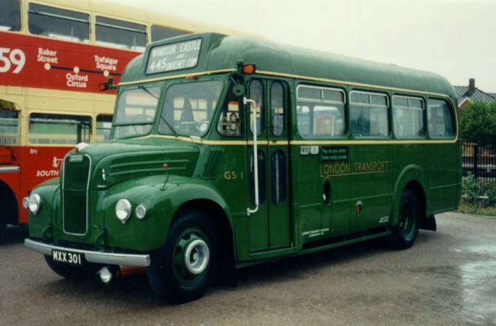GS30 MXX 330 11/53 new to LT, Guy Special #44812, ECW B26F body #6376, LT body number 8195 12/53 GF into service on 448/A (Guildford) 1954 GF 7/55 GF used on 448/A 11/56 Aldenham overhaul 11/56 GF from o/h GF used on 448 3/57 NF transfer (Northfleet) 9/57 GR transfer (Garston): used on 309 1/58 GR into store 3/58 GR ..and out 10/58 MA transfer (Amersham) 11/58 WR transfer (Windsor) 1/59 LH transfer (Leatherhead) LH used on 422 2/59 LH into store 3/59 LH ..and out 6/59 LH into store 7/59 LH ..and out 9/59 LH into store 11/59 DG change store (Dunton Green) 12/59 DG ..and out 1960 DG 3/61 DG into store 5/61 DG to Aldenham overhaul 6/61 MA from overhaul unlicensed 7/61 MA relicensed 10/62 GR transfer 1963 GR 9/64 GR into store 1/65 sold to Ozalid Ltd, Loughton, Essex 11/67 bought by Broadway Coaches, Loughton scrapped GS31 MXX 331 11/53 new to LT, Guy Special #44817, ECW B26F body #6380, LT body number 8196 12/53 GF into service on 448/A (Guildford) 54-5 GF 7/56 MA transfer (Amersham) 11/56 Aldenham overhaul 11/56 MA from o/h 1957 MA used on 348 12/58 MA into store 1/59 MA ..and out 1960 MA 5/61 MA to Aldenham overhaul 8/61 MA from overhaul 10/62 GR transfer (Garston) 1963 GR 9/64 GR into store 3/65 bought by D.Abel London (School Bus) bought by Seth Coaches (for spares) 12/66 sold to R.E.Doyle (London.NW1): scrapped GS32 MXX 332 11/53 new to LT, Guy Special #44819, ECW B26F body #6373, LT body number 8197 11/53 DG into service on 471 (Dunton Green) 54-5 DG used on 471 11/56 DG to Aldenham overhaul 1/57 EP from Aldenham o/h (Epping) 2/57 GF transfer (Guildford).. 2/57 MA ..and again (Amersham) 5/57 EG transfer for 494 (East Grinstead) 8/57 DS transfer for 449, 433 (Dorking) 11/57 SJ transfer (Swanley) 12/57 SJ into store 58-60 SJ in store 2/61 RE change store (Romford) 6/61 sold to Birds, (Stratford upon Avon) 6/61 bought by Talbott - Barry's Coaches, Morton in Marsh: used for British Rail staff transport contracts 4/63 withdrawn 5/63 bought by Corvedale Motor Co., Ludlow 3/64 withdrawn 4/64 bought by Yarranton Bros, Tenby Wells 12/67 engine frost damaged 12/67 sold to Vincent Greenhous (Hereford) */68 bought by Powell, (Newport, IoW): builder's hut 6/79 sold to Jones, Bromberrow Heath 6/89 bought by Wilkes, Castle Morton: farm shed 12/92 bought for preservation spares 93-7 restored to active status: GS32 Group 5/98 active Preservation: John Clarke, Aylesbury 9/98 at Showbus98 9/99 at Showbus99 4/2000 active at East Grinstead Running Day 9/00 active on Hertford Running Day 9/01 active on Dorking Running Day 6/03 active on Hitchin & Hertford Running Day 8/03 active on Dorking Running Day 9/03 active on Westerham & Oxted Running Day 9/03 Showbus: best preserved London Bus award 10/03 active on Chesham Running Day 6/04 active on Hertford Running Day (329,329A,388) 7/05 active on Knockholt Pound Running Day (471, 479)