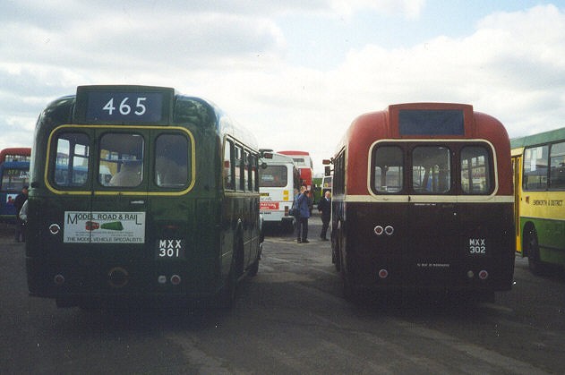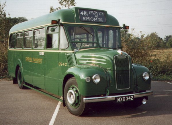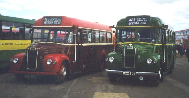 GS 1 MXX 301 10/53 new to LT, Guy Special #44208, ECW B26F body #6347, LT body number 8166 10/53 CM (Chelsham) new, trainer, then into service on 453, 464, 465, 485 1954 CM in use on 465 7/55 CM 4/56 CM to Aldenham overhaul 4/56 CM from o/h 57-8 CM (Chelsham 7/59 CM to Aldenham overhaul 9/59 CM from overhaul, unlicensed 10/59 CM relicensed 11/60 CM into store 12/60 CM ..and out 1961 CM 7/62 CM 10/62 RG transfer into store 3/63 sold to Tillingbourne Valley, #1, used on 448 repainted in maroon with grey lining 64-8 Tillingbourne Valley 2/69 preservation status 8/71 withdrawn 8/71 bought for preservation by G.Trice, Chilworth 7/74 preserved by G.Trice, Chilworth bought by Harveson, Rusper, West Sussex 9/83 bought by Model Road & Rail, Worcester Park (Surrey) 1991 restoration to 1959 condition 9/95 at Victoria Dock Rally 10/97 at Showbus 97 1998 at East Grinstead Running Day (494), Cobham Open Day, Showbus98 1999 Dunton Green Running Day (471), Cobham Open Day, Showbus99 2000 active at Chart Running Day (464), East Grinstead Running Day (465,494) 9/00 active on Hertford Running Day 4/01 active on East Grinstead Running Day (494) 6/01 active on Hertford Running Day (384) 6/01 active at RF50 9/01 active on Dorking Running Day (449) 4/02 at Cobham Open Day 4/02 active on East Grinstead Running Day (494) 6/02 active on Hertford Running Day (308,308A,388) 9/02 active on Dorking Running Day (425,448) 4/03 active on East Grinstead Running Day (428,494) 6/03 active on Hitchin & Hertford Running Day (333 +) 9/03 active on Westerham & Oxted Running Day (464,465,485) 10/03 active on Chesham Running Day (316,397) 4/04 active on East Grinstead Running Day (428,434) 6/04 active on Hertford Running Day (329,329A) 7/04 active on Knockholt Pound Running Day (471) 8/04 active on Dorking Running Day (425,448,449) 10/04 active on Northfleet Running Day (450) 3/05 active on Swanley Running Day (478,479,452) 4/05 active on East Grinstead Running Day (494) 7/05 active on Knockholt Pound Running Day (471, 479)