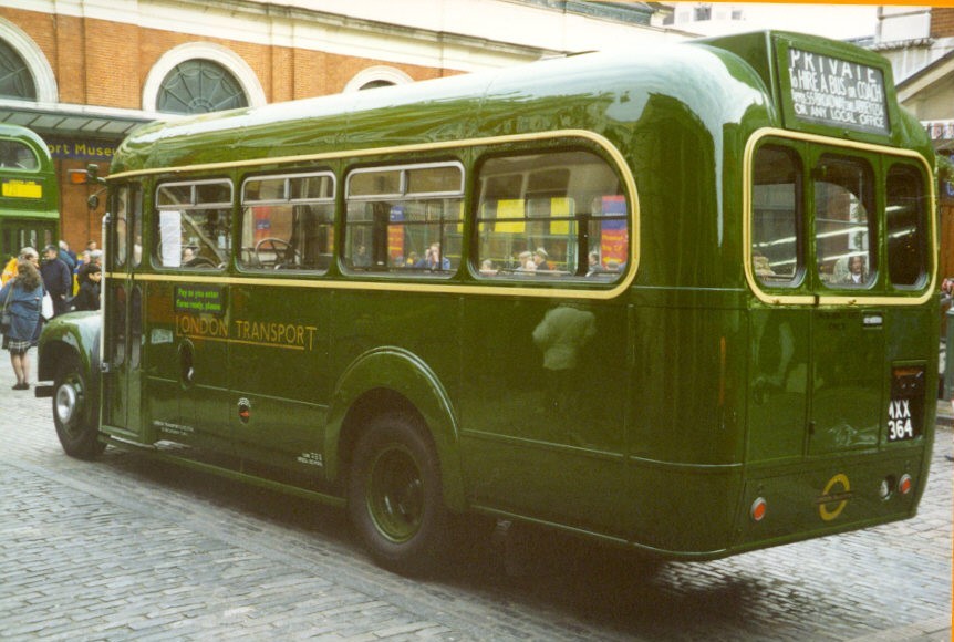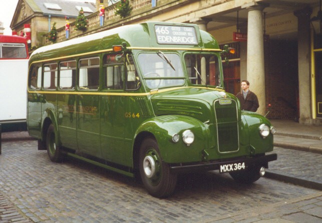 GS63 MXX 363 12/53 new to LT, Guy Special #44988, ECW B26F body #6410, LT body number 8228 1/54 HN into service (Hitchin) 7/55 HG on loan: used on 333 (Hertford) 1956 HN 10/57 HN delicensed, stored 12/57 HN to Aldenham overhaul 2/58 LS from overhaul, unlicensed (Luton) 3/58 HN transfer 9/58 loaned to Great Yarmouth Corporation MXX 361 swapped reg with 61. 7/59 GM returned from loan, into store (Victoria) 8/59 GY change store (Grays) 1960 GY in store 2/61 RE change store (Romford) 5/61 sold to Corvedale Motors, Ludlow, #6 MXX 361 Active Preservation, I.Davies, Knighton 9/07 at Merthyr Tydfil Rally GS64 MXX 364 12/53 new to LT, Guy Special #44994, ECW B26F body #6409, LT body number 8229 12/53 MA into service (Amersham) 6/54 MA used on 373 MA used on 345A 55-6 MA 5/57 MA to Aldenham overhaul 7/57 MA from overhaul, unlicensed 8/57 MA relicensed 58-61 MA 1962 MA used on 332 7/62 MA into store 8/62 MA to Aldenham overhaul 10/62 MA from o/h unlicensed 11/62 SV transfer (Stevenage) 9/63 SV into store 10/63 HG change store, 10/63 SV return to service 2/64 SV into store again 4/64 HG transfer (Hertford) 65-6 HG 5/67 HG delicensed, stored 7/67 SV change store 10/67 HF change store (Hatfield) 12/68 GY change store (Grays) 1/70 GY transfer to London Country (already withdrawn) 8/70 GR change store (Garston) 4/71 bought by Tillingbourne Valley Services; 10/72 withdrawn 1/74 sold to J.Lines of London (Preservation) 5/74 sold to J.P.Wood of Craven Arms (Numbered 1): Chuckie Chickens staff transport 4/76 active with J.P.Woods (It was still there early 1979) 6/79 bought for preservation: Sockett, Wolverhampton 8/85 bought by LT Museum. 1997 restoration completed for LT Museum. AG Active Preservation: kept at Ash Grove 12/98 AT Ash Grove-Covent Garden-Acton Depot run 8/03 active on Dorking Running Day 7/05 active on Knockholt Pound Running Day (471) 6/06 active on Hertford Running Day (388) 6/10 active on Hertford Running Day (308A, 329) 6/11 active at Hertford Running Day (308A, 333)
