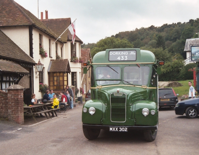 London Country Heritage Services433 DS Dorking - Dorking North - Ranmore Common - Polesden Lacey - Horsley - Clandon - GuildfordSurrey County Council sponsored a number of leisure services on Summer Sundays during the late nineties, which included a route loosely rooted in the old 433. This new 433 operated between Dorking and Guildford, taking in Polesden Lacey - a noted tourist attraction not far from Ranmore Common. There it connected with a Routemaster on a 410 Summer Sunday service from Westerham. The 433 used a couple of GS buses: GS13 which had been reacquired by London & Country and repainted in Country Area green with gold London Country fleetnames, and GS67 from Nostalgiabus (their No.7), which wore their burgundy livery with white lining. GS13 wore its London Country 433 Surrey Sunday blinds when it came to the September 2001 Running Day at Dorking.