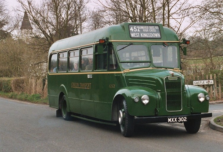 Most unusually these two GS routes met a trolleybus route: the 696 which terminated at Dartford. GS2 operated along part of the 452 route during the Country Bus Rallies Running Day on 20th March 2005. On the way up the deeply rural Fawkham Valley a stop was made near Fawkham Church. A few minutes later the Portobello Inn on the old A20 was reached, and the blinds reset for a return journey. .