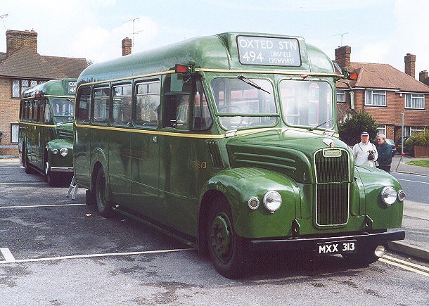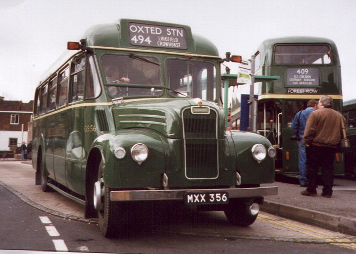 The route exited the King Street bus station in East Grinstead, where it rubbed shoulders with Southdown routes as well as the trunk LT route 409 (West Croydon - Forest Row), the 424 from Reigate (which operated a mix of vehicles, including some RLH), and RF operated routes to Crawley and Edenbridge. It crossed over the railway bridges at the north end of the town and turned off the main road onto the road through Baldwins Hill and Felcourt to Lingfield. It headed on north into countryside through Crowhurst Place and Crowhurst Lane End, where it turned right to squeeze under the low railway bridge. The bus could then race north through Chathill and climb over the Greensand Ridge through Tandridge. It reached the main road just west of Oxted, and rubbed shoulders with more RLH buses on route 410 on the way down through narrow Old Oxted and on into the more modern town clustered around the railway station of Oxted. Some journeys continued on through Limpsfield and up onto Limpsfield Chart, terminating at Chart Church. GS56 revisited the 494 during the Country Bus Running Day in April 1998. GS56 is in King Street, East Grinstead, about to depart for Oxted Station.![]() ![]() GS13 was on 494 duty at the April 2000 Running Day, with GS1. GS13 was seen before the start, at East Grinstead, while GS1 is seen near the end of the day on a re-enactment of one of the Limpsfield Chart workings, at Chart Church.GS58 and GS59 were the East Grinstead based GSs, GS58 staying there, (apart from overhauls) until August 1962, and GS59 until May 1964, when one-man-operated RFs took over. GS39 took over from GS58, staying from June 1962 until February 1963. Cover for overhauls included GS54 (I don't know when), GS26 in April/May 1957, GS32 from May to August 1957, GS47 from May to September 1962.