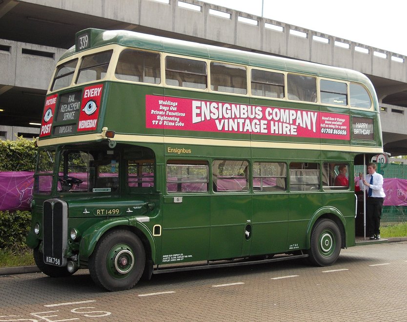Harlow Running DaySunday May 5th 2013Prepared by Ian Smith, 7th May 2013.Harlow: ArrivalI arrived at Harlow Town station from Cambridge on a rammed-full train, in brilliant sunshine. The station bus stands gave no intimation whatsoever of any Sunday services up to the bus station, so I set off to enjoy the walk up the hill. I had slight misgivings about travelling on foot through the New Town, fearing that it would be laid out for cars with little thought for pedestrians. At first all was well, and I walked up a good footpath beside a dual carriageway. A Regal Busways Optare Solo - a small one - dashed past on a Town Service. So there are buses here on Sundays. The town centre appeared ahead, on the far side of a roundabout. Apparently pedestrians are not allowed to cross this roundabout junction on a north-south axis. It is closed off by substantial barriers. Green Line liveried RT3254 came northwards down to the roundabout and turned west, on a 397. I crossed the road westwards, seeking a route through the metal maze. BN45 came round the roundabout, heading north towards the station on a 390 service to Lower Sheering (Sawbridgeworth).I sneaked around the barriers and through a gap in a hedge, and made my way up into the bus station. Another modern service bus: Network Harlow's Volvo / Wright Eclipse 3856 departing with the 510 Harlow-Stansted Airport service. Further up the bus station stoof RF308, loading for a 805 departure to Epping. It pulled away as I walked up past the stands. The vast bus station looked empty at first glance, but it wasn't: buses were mostly gathered up at the south end. Olympus/Roadrunner's ex-Metroline DLD176, converted to single doorway but without fleetname, came rolling down the slope past GS13, which was set up for work on the 393, one of the original Epping garage GS routes. Resting after its long run across London from The London Bus Museum at Brooklands was RP90, looking great in its Green Line livery. Also immaculate, and in Green Line livery too, was Ensignbus's RT3232, set up for the 805 local service to Pinnacles. Continuing the Green Line theme was RT2083. Although not in Green Line livery, but its standard Country Area green and cream, it was carrying blinds for route 720. Also awaiting service was another RT, this time Cravens-bodied RT1499, now with Ensignbus. RF673 had arrived, having come across from Hertford on a 388 - one of the many eastern end variations of this route over the years. It had actually come in from High Wycombe before that. RML2310, from Timebus, was working the northern local loop of the 805, to Little Parndon, reminding us of Harlow's extensive use of RMLs. AEC Merlin MB90 roared in with a Green Line 718 service from Staines. I acquired a programme - a very smart production - and looked to see how I could cover the Epping garage GS routes, the 381 and 393. The latter was coming first, operated by RF673, and I made my way to the relevant stand...