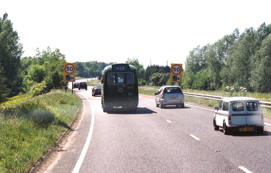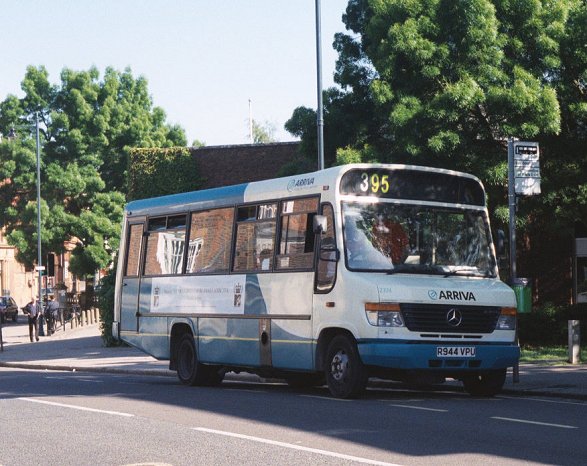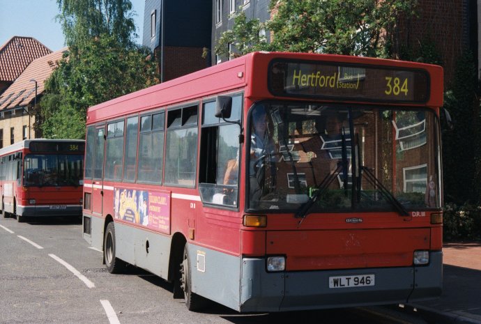 Hertford & Stevenage Running DaySunday June 2nd 2002Prepared by Ian Smith, 17th June 2002Part 1: The day before: Swanley to HertfordThe rendezvous was appropriate: Swanley garage. I arrived early on a gorgeous Saturday lunch-time, with a sandwich and a drink bought from a snack-bar in Swanley, and settled to watch the buses. Regular passers-by were the Dart SLFs on the 233, Swanley - Eltham, operated by Metrobus. But the Green Traveller also swept past, Arriva Kent Thameside's special livery Optare MetroRider, on the G2 to West Kingsdown.A much more unusual visitor was a brand-new Volvo B6BLE with East Lancs Spryte bodywork, VS522, belonging to Metropolitan Omnibus and based at Harlesden. It came up the road from the Chatham direction, turned round and came back to stop on the narrow garage forecourt. After picking up a fitter it zoomed off to the east again. Much more at-home was one of Southland's own Darts, that came in off a duty on the Sevenoaks 404. Then up the road came the familiar sight of RF679, with Mike Dawes at the wheel. To my surprise it was followed by GS2, the red GS in Southern Motorways livery with Peter Aves in control. They pulled into the garage, and with permission turned in the yard behind. It must be a while since Swanley Garage saw either a GS or an RF, let alone both together! I went with RF679 for the long haul north, under the Thames at Dartford and then up the M25 and M11 to Harlow. GS2 tagged along faithfully behind. On the outskirts of Harlow we passed a modern equivalent of the GS, a Marshall Minibus operated by the Buzz Co-operative. We stopped briefly and I switched onto GS2. We stopped again near St Margaret's to top up the fuel on the two buses, then motored on across to Hertford. There we checked in at our overnight bus-garage, then went in to Hertford to visit the bus-station. The bus-station at Bircherley Green wasn't finished. It had been closed for refurbishment of the platforms (to provide level but lumpy access between the concourse and the minute stop-platforms.) We had been told that it would be finished in time. It wasn't. Some areas still had holes awaiting still-to-be-cut flags, and there was copious fencing. But there was enough to work with, if we used stops on the far side of the area. Interested in our arrival with the buses were the crews of local operator London Transit, who had a pair of ex-London United Darts (DR107 and DR111) there for the 384. We did what we could, then retired to our hotel. Later, during a walk round the town, we saw the Saturday evening vehicle on the local 395, Mercedes Midibus 2374 of Arriva The Shires. But it was time for dinner and an evening of pleasant company before the exertions of Sunday.