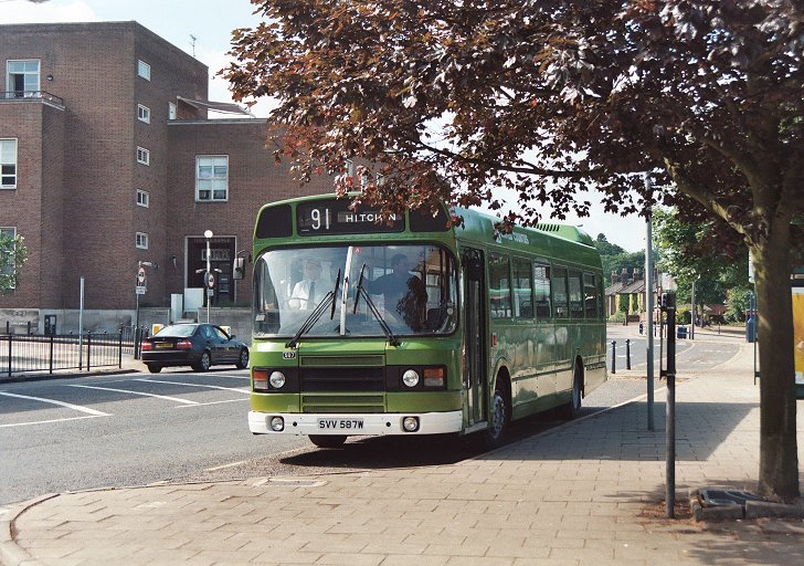 Another of the Country Bus Rallies' services was provided by United Counties Leyland National 587, ploughing a somewhat lonely furrow around the northern fringe of the day's system, operating three routes linking Baldock, Stevehage, Letchworth and Hitchin.