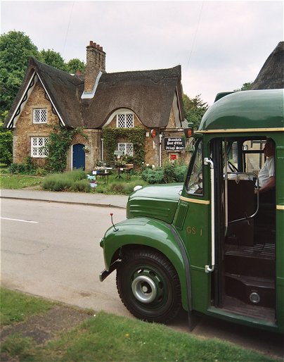 Next up was GS1 on the 329 to Knebworth (Nup End), with John Huxford driving and me navigating. Unlike the morning run this one was full, and we had to turn a few people away. We pulled out from the bus station, and round out of the town and out to Bramfield. To our surprise we were able to pause for pictures outside the Post Office, despite this being Sunday afternoon. Perhaps everyone was in Hertford! We continued on to Datchworth Green, Woolmer Green and Knebworth, and turned up past the station to Old Knebworth. The horsey event was still in full swing, so we were not bothered by traffic for it this time. At Nup End we stopped in the central refuge to change the blinds. John was really surprised when I indicated which of the lanes was our way on towards Hitchin. "I'd never have guessed" he said. Seems like I'd earned my keep!
