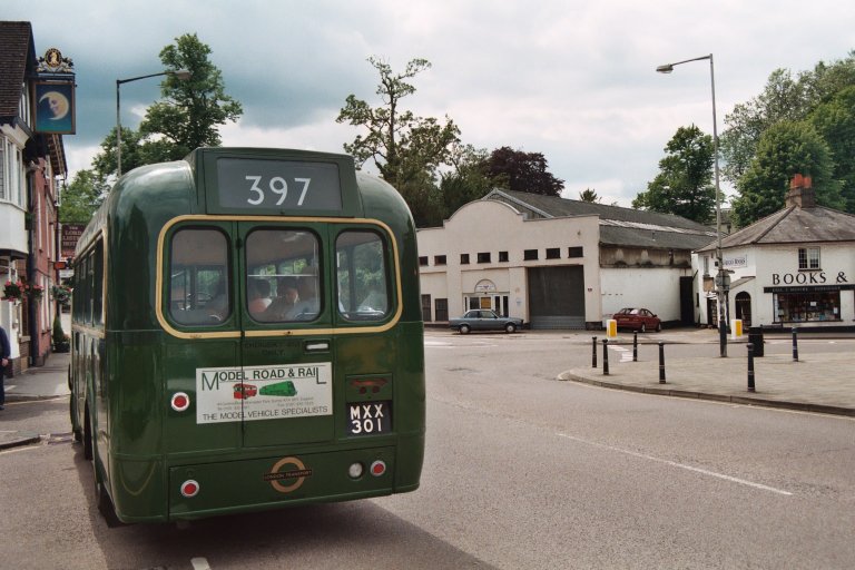 We insinuated our way through to Tower Lodge, and roared down into Hitchin. We turned in St Mary's Square, across the town's central park from the Parish Church and town centre. I went across the road to get a soft drink from the bar. Sovereign's Volvo / Wright Renown No139 rolled smoothly past on the 101 service to Luton. Today's medium-distance inter-urban in Hertfordshire do have a certain style, even if their decoration is not as civilised as in London Transport days.