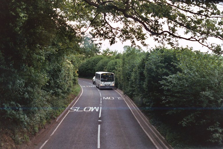 We climbed up past the County Offices, and out into the country past Horns Mill. Colin Rivers and I sat upstairs keeping an eye on the overhanging trees, ready to signal an abrupt halt if anything looked too low. We passed a service 341 on the way, one of Universitybus' Dart/Wrights, that don't require a tree-lopping service. But all was well this year, and soon we had passed the usual offenders and stopped at Essendon Mill for photos, before driving back into Hertford on the new road.