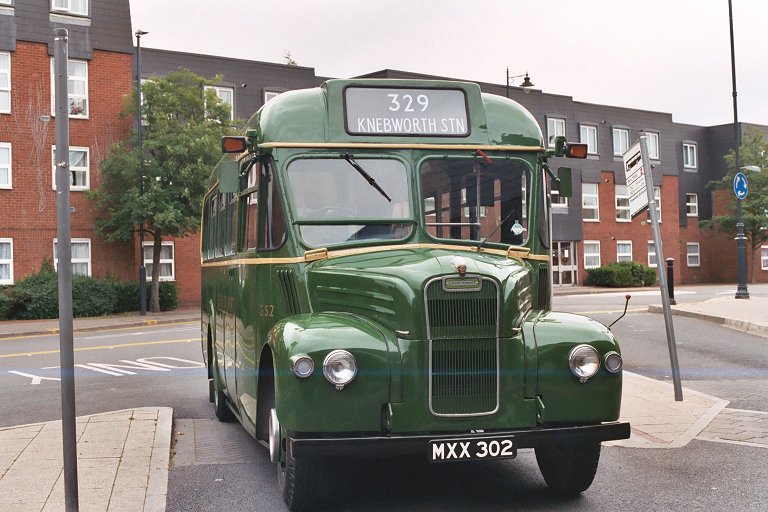 We squeezed through to Datchworth Green and turned left, past the cricket green and out across the fields to Woolmer Green, where we joined the main road to Knebworth. Much to my surprise (so much camera shake the picture is unusable) we passed a south-bound service bus, the 301 Stevenage - Welwyn - Hatfield - St.Albans service, with one of the ex-Sovereign vehicles still in Sovereign livery in charge (Arriva The Shires took over the Sovereign operation in January). We reached Knebworth and turned the corner up under the railway bridge to the station, where we pulled into the station forecourt behind GS17. This had worked in from Hitchin as a 329A.