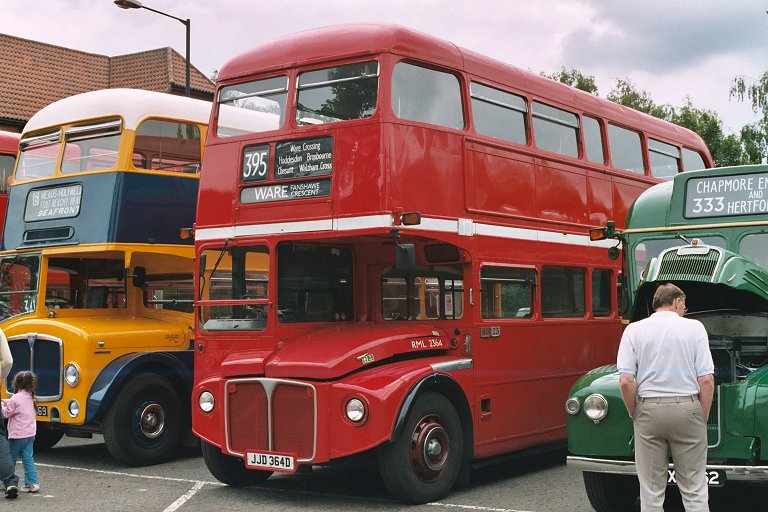 RM1699, ready to travel the 341 to Hatfield and back, was standing next to RT4317 (which I somehow failed to photograph, sorry!). Another red RT was Saunders-bodied RT3062 of Blue Triangle, while next to that was the only remaining genuine Country-Area roofbox RT, RT3496. Both these two were in early postwar livery with cream uppers. It looked like the local 341 and 395 routes were in for an interesting day!