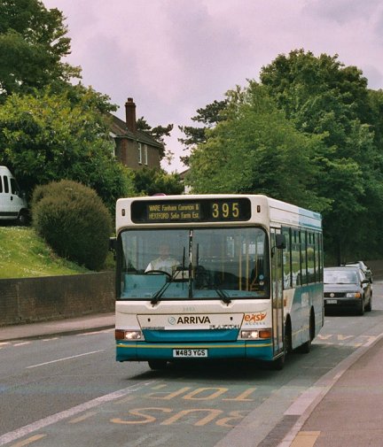 The RMC then rumbled back up the road through Broxbourne, and negotiated the complexities of Hoddesdon. I had calculated that I did not have time to go back to Hertford if I wanted to catch RT3148 on its 331A run to Braughing, but that I could change at Ware. Aware that it would be a trip in large demand, I pre-arranged with Peter Aves (the RT's driver) for a pick-up at Ware Crossing. So when the RMC reached there I alighted, along with some others, and crossed to the stop opposite. The first bus along, of course, was the Hertford-Ware 395 shuttle, with Arriva Dart SLF 3483.