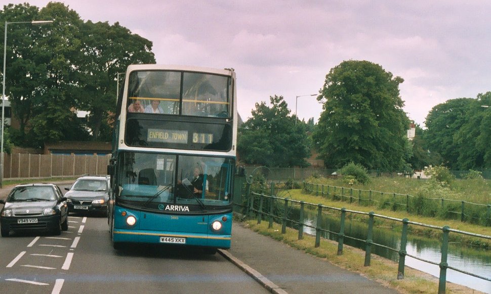 We ran out along the Ware road, and passed along by the New River past Ware Crossing. We came up behind an Arriva Trident (5445) on the 311, and passed it. The RMC sped on, past Amwell Crossroads and down into Hoddesdon. There we had a very brief photo-stop.