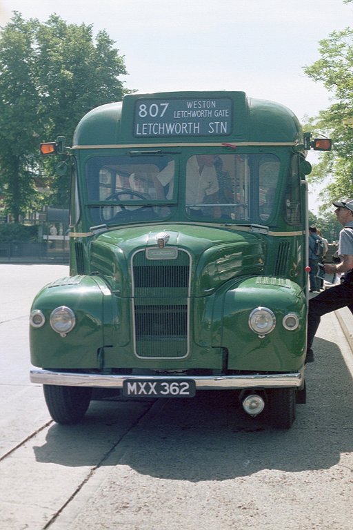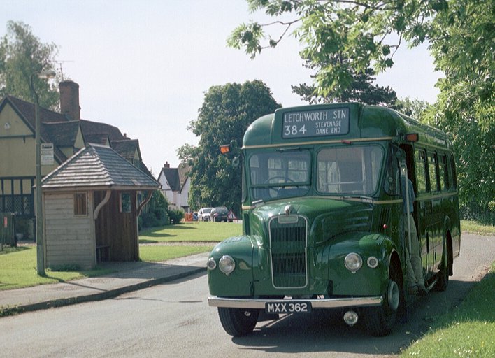 Folk meeting our bus at Benington told us that RF4 had not appeared at Letchworth, so after a short period watching the ducks and babies on the pond we set off again along the narrow twisting section to Walkern. There we paused at the London Transport wooden bus shelter before driving on into the increasing urban spawl of Stevenage. We made our way into Old Stevenage, then round the traffic management system to locate the bus station.