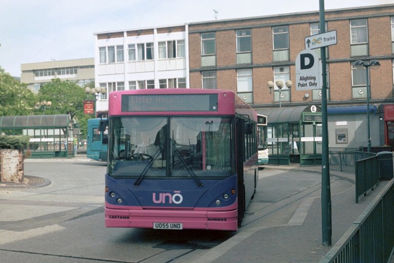 We went on towards Hitchin, burrowing under the East Coast Main Line, then climbing over the top of the town before descending towards St.Mary's Square. I was going to stop at the old LT concrete bus stop at the top of the hill, but it has been provided with kerb ramps and a new perspex and metal bus shelter, so we didn't bother to stop. We went on down the hill, to cross the road at the bottom into the bus lay-by.