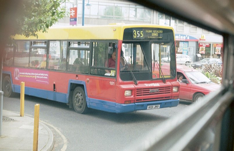 A double-decker squeezed past us, then blocked us in, and Trustline's Lynx Mk11, No101, pulled in behind on Rail Replacement duty.