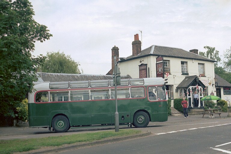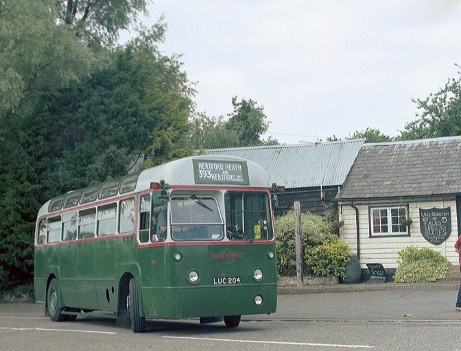 We left Hertford on the London Road, and turned off onto the old road to climb up to Hertford Heath, where we turned on the triangle in front of the pub. The landlord came out to enquire why he had been blessed with a visitation of old London buses during the day and we explained.