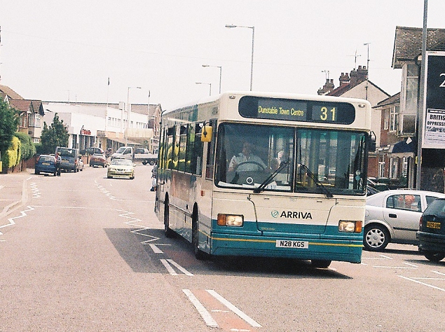 We turned left for Luton. We met Volvo/ Wright Renown 3264 heading for Leighton Buzzard on route 31. A little further on we met Centrebus' sole Northern-Counties bodied Dart (189) heading for Hemel Hempstead.