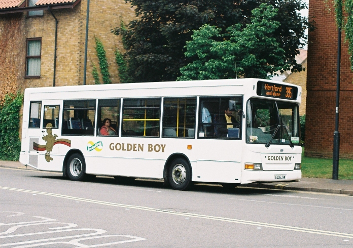Illustrating thirty years of small bus development were Golden Boy's Dart SLF EU06JVW (used on the 333 or 324 on weekdays, and the 395 on Sundays), and London Transport Museum's Bristol BN61, now checking in before a day's activity.
