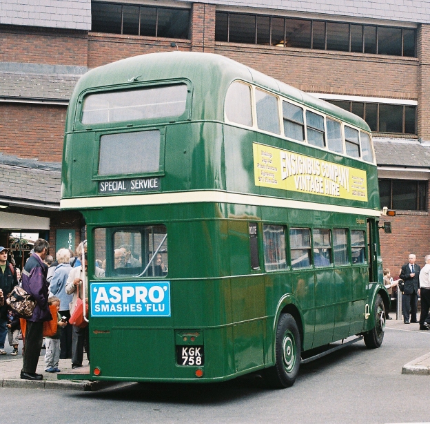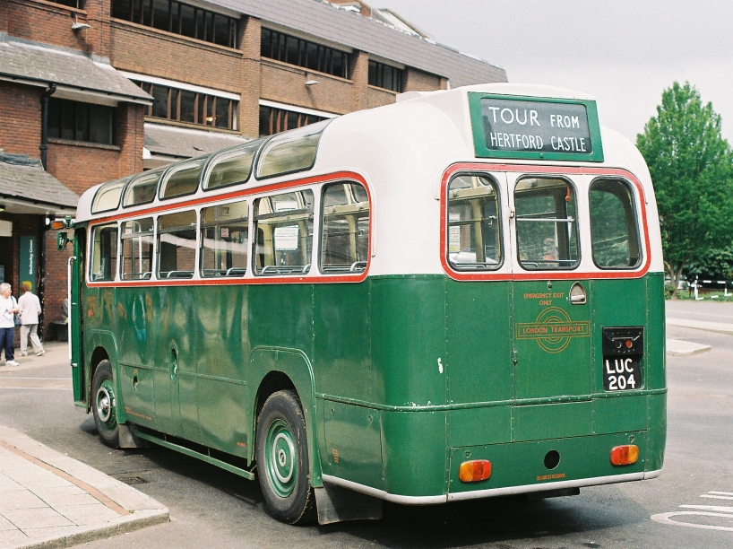 But now we at least had an arrival: RF4, one of the original short RFs rushed into traffic for the Festival of Britain tourst traffic, with glass roof panels, arrived on the 384, all the way from Letchworth Station, most northerly point of the London Transport system.
